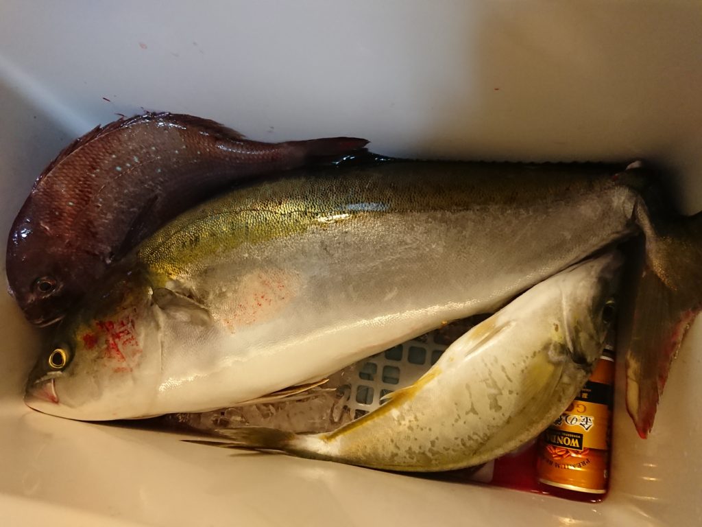 時間がきて鯛1、シマアジ1、メジロ1で納竿となりました。