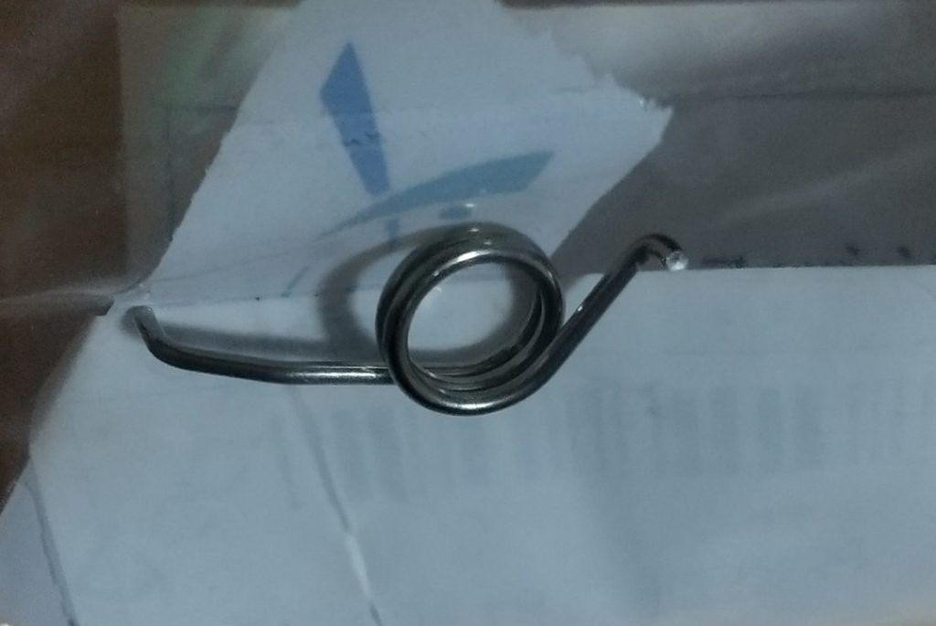 下の写真が交換する新しいバネです。早速、修理開始です!