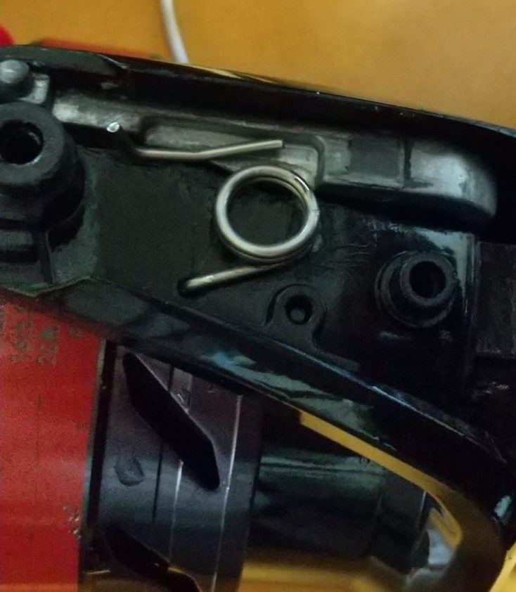 ベールの根元の外装のネジを外して中身をみてみると、何らかのバネが折れてる!