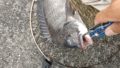 なかなか上がらんのでどーせエイかな?切ろうかな?と思いましたが、万が一カンダイとかの大物かもしれないのでせめて姿は見ようと10分以上、ヒヤヒヤしながら慎重に押し引きのやり取りを続けました。
