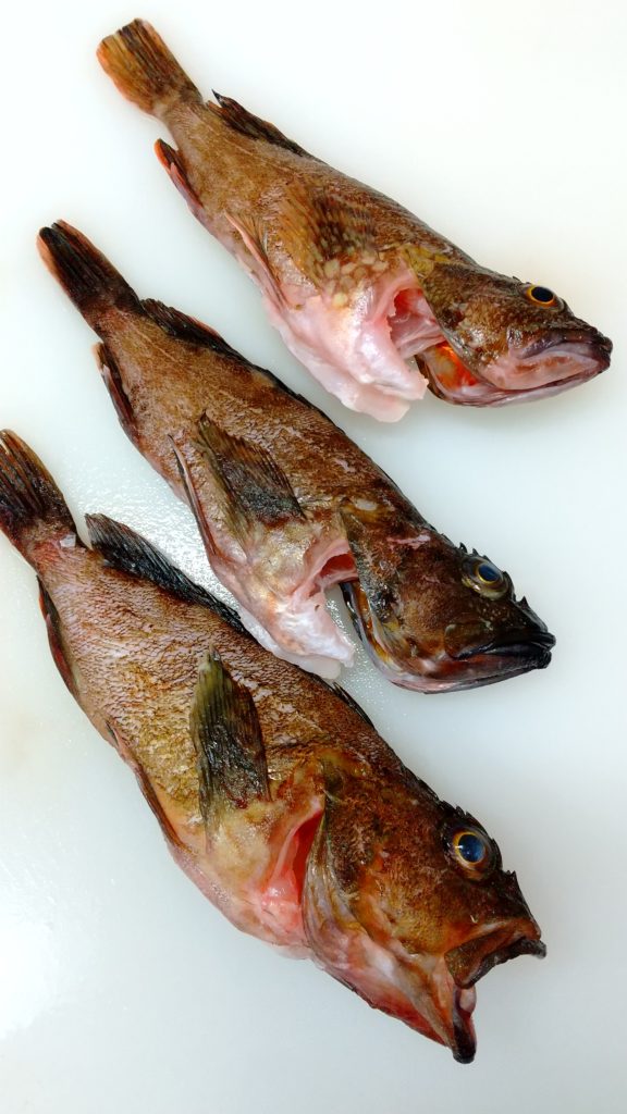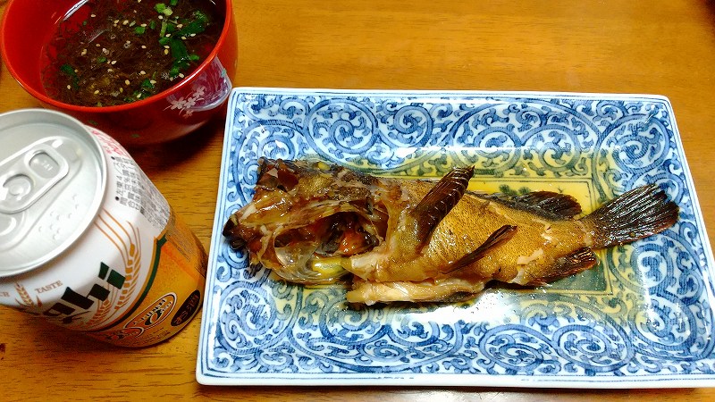- 火を止めて、2分くらい煮汁をガシラの上にスプーンでかける。