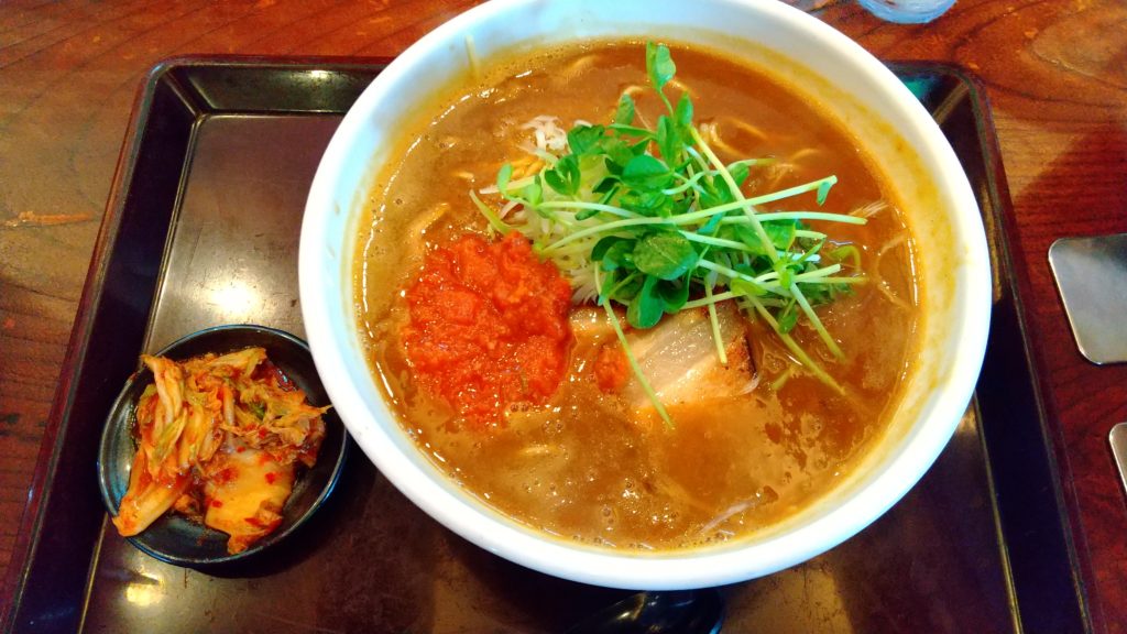 帰りにらーめんたろう摩耶店のトマトカレーラーメンをいただきました。