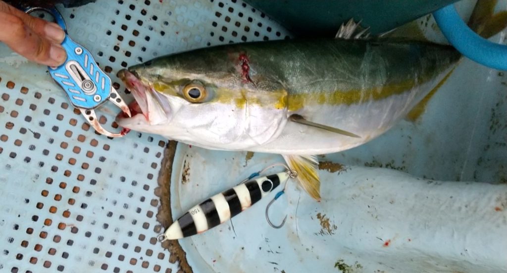 開始1時間以内に船内でパラパラとぎりぎりメジロサイズが釣れ出す。