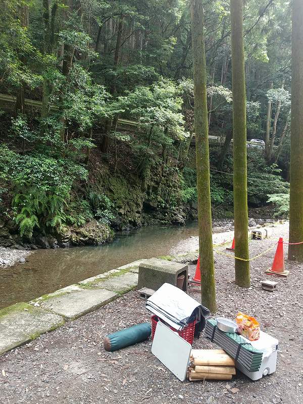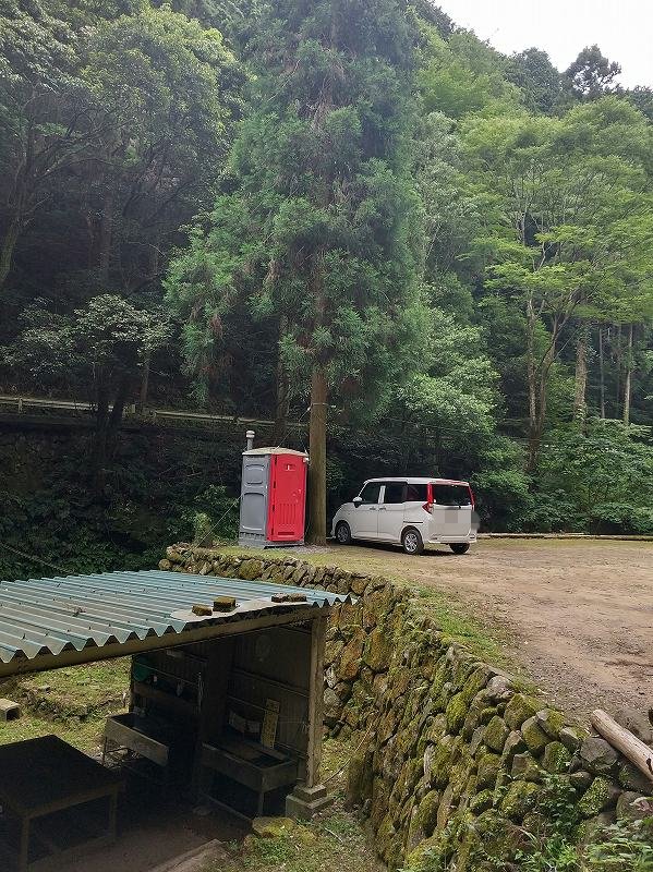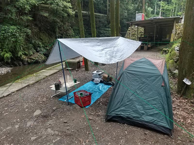 この場所なら屋根付きの炊事場も近く、今日は夕方から雨予報だったので最悪雨よけるため避難もできるかなと。
