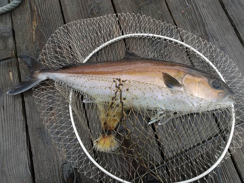 アジの泳がせで大きいカンパチが最後にきました。青コールしてから時おりジャラジャラとドラグ出されながらも時間かけてなんとかゲット。