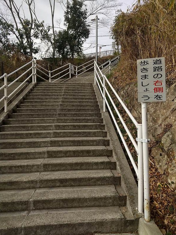 駅近くの階段を上がっていく
