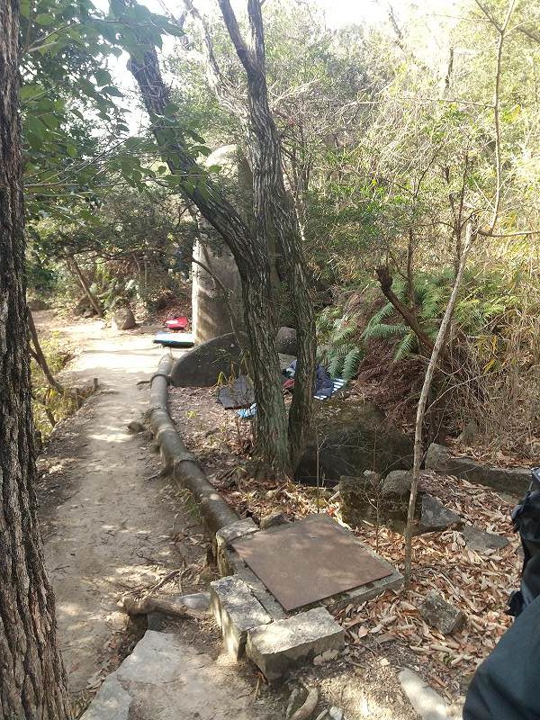 この奥に上に登る道がある