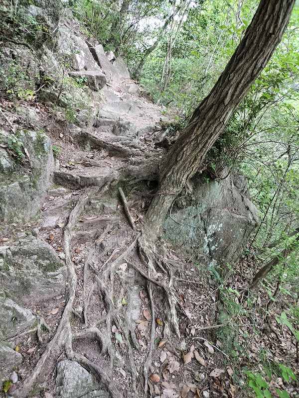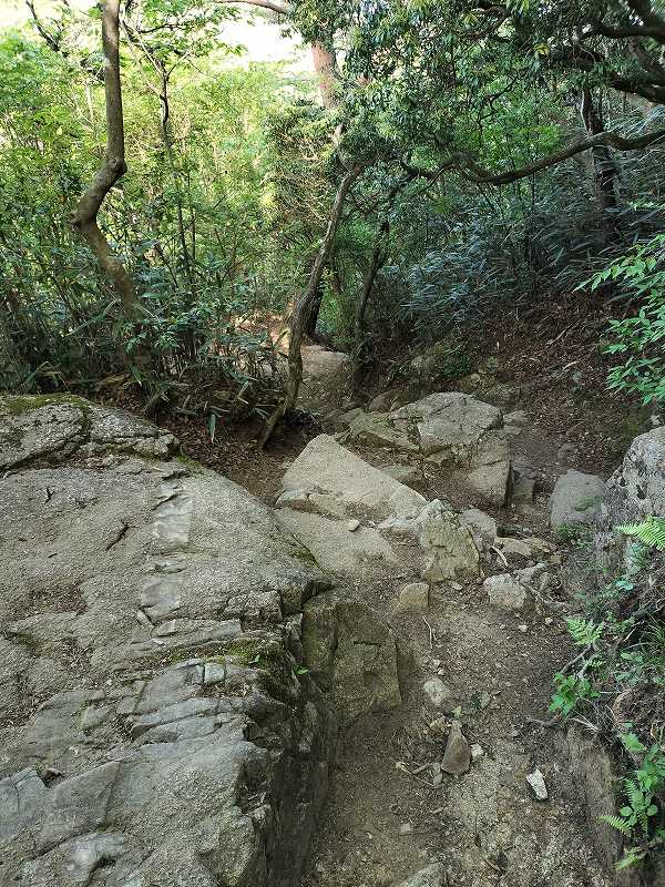 ゴツゴツした岩の階段も下りていく