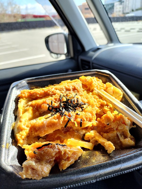 すぐ近くのコインPでカツ丼食べてから釣場に移動