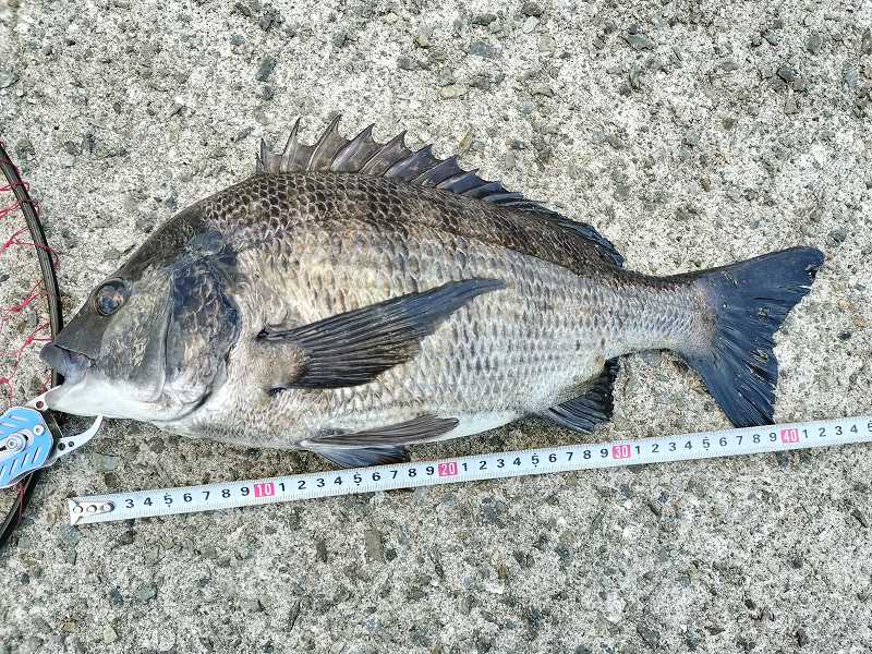 体長はめちゃ大きいわけじゃないけど、よく太ったチヌ
