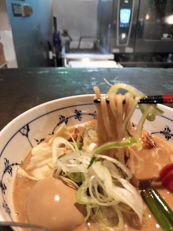 スープは見た目よりドロッとはしてない、しっかり魚介を感じる豚骨