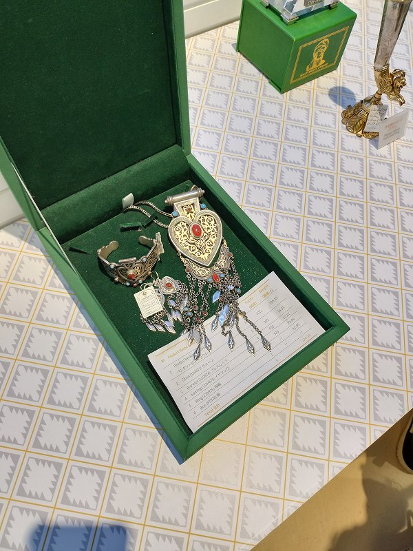 「ペンダントネックレス」「チェーン」「ブレスレット」「イヤリング」「リング」「箱」と書かれてて、それぞれに重さ(Weight)が記載