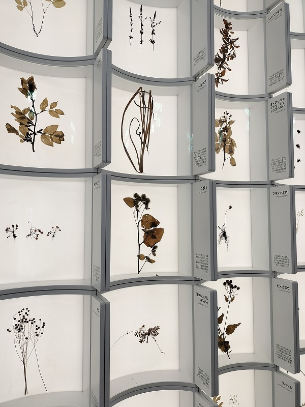 自然豊かな国のか、すごい数の植物が壁に展示されている