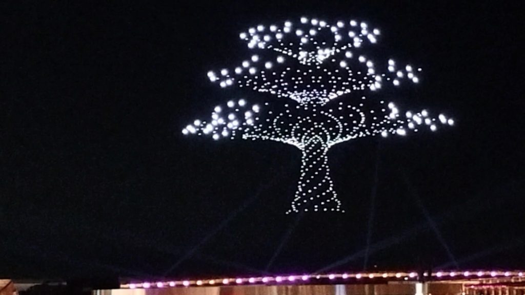 花火ほどの派手さはないが、この点々の一つ一つがドローンと思うとすごい