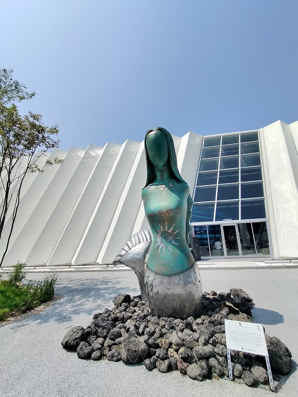 「未来の都市」と「フューチャーライフビレッジ」の間の通路にある像
